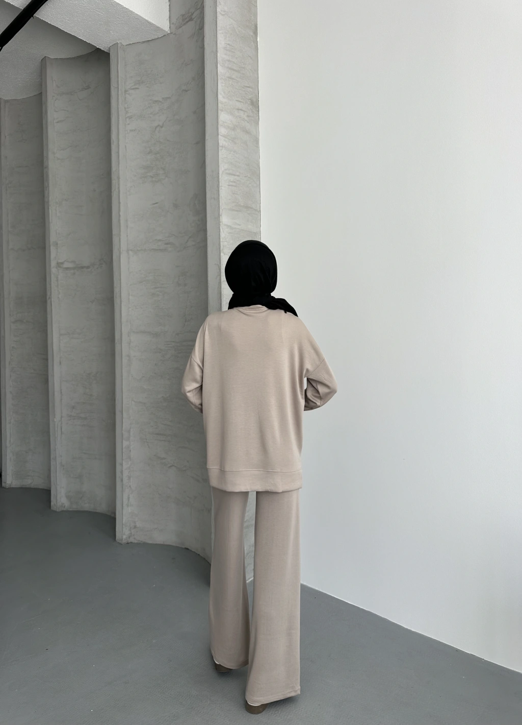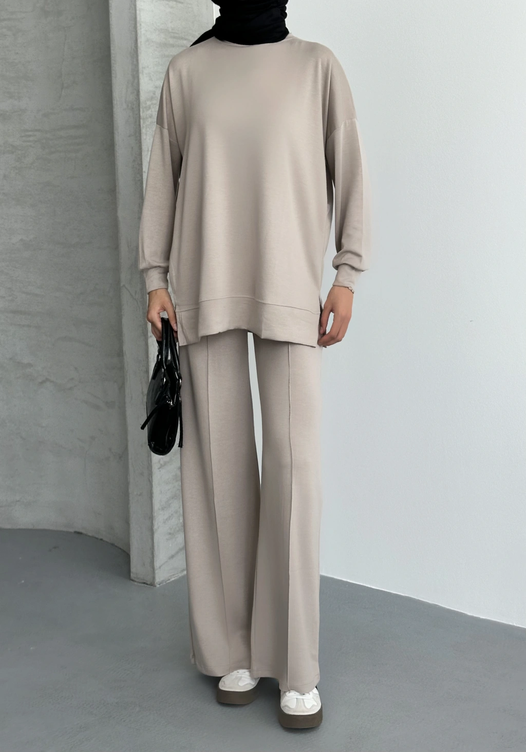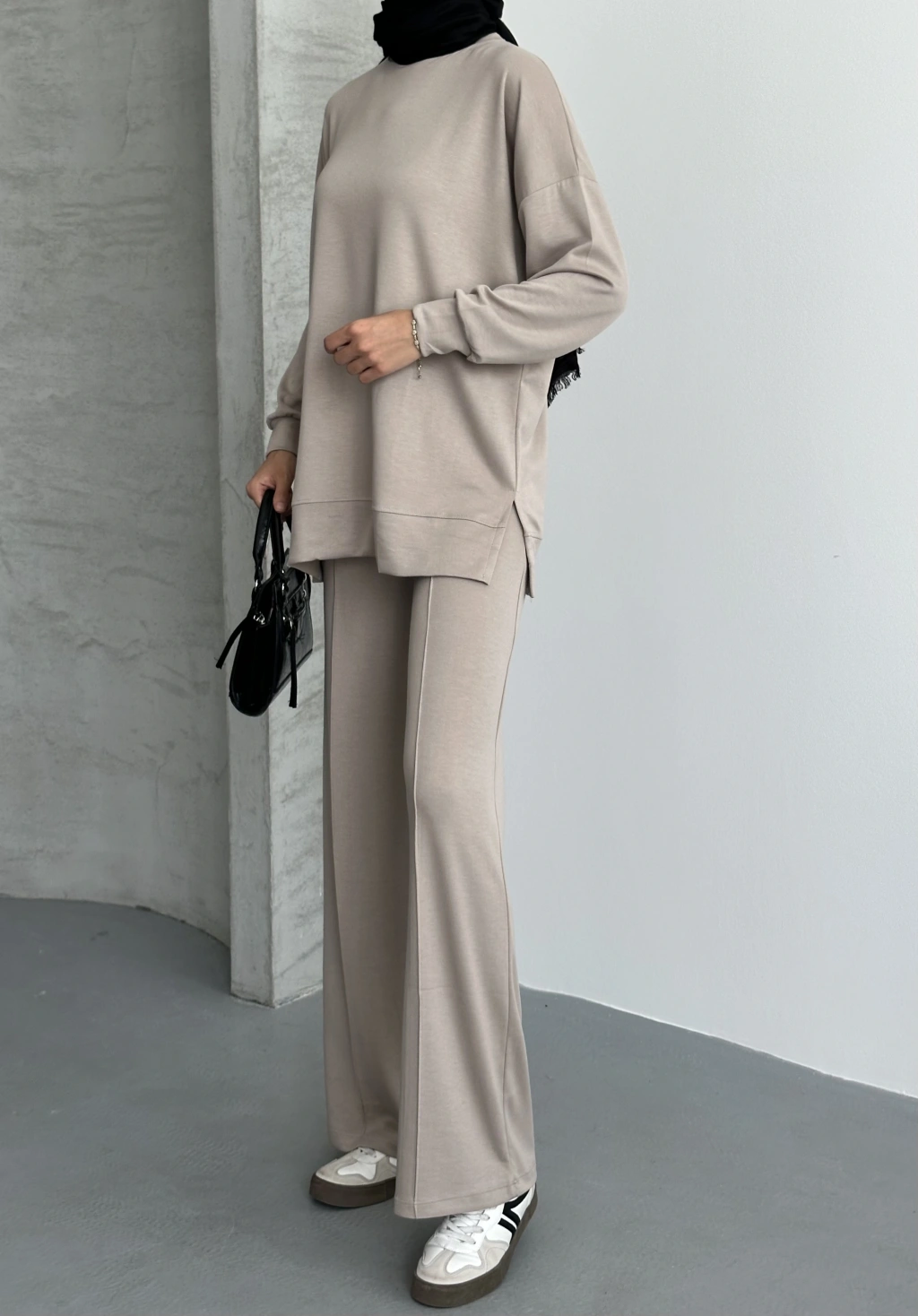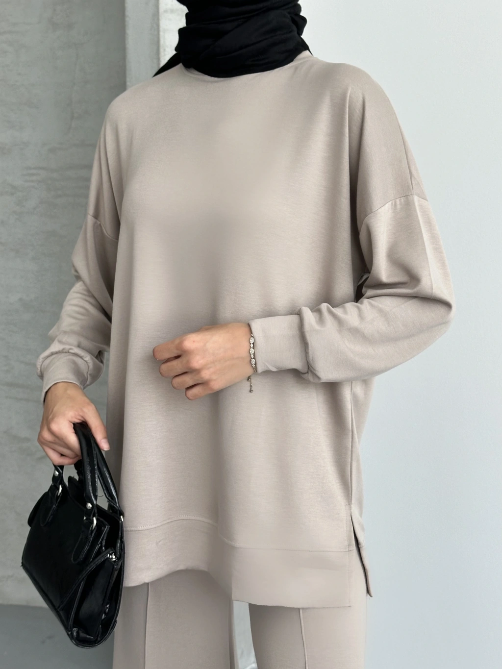 Bej Çımalı Modal Tesettür Alt Üst Takım
