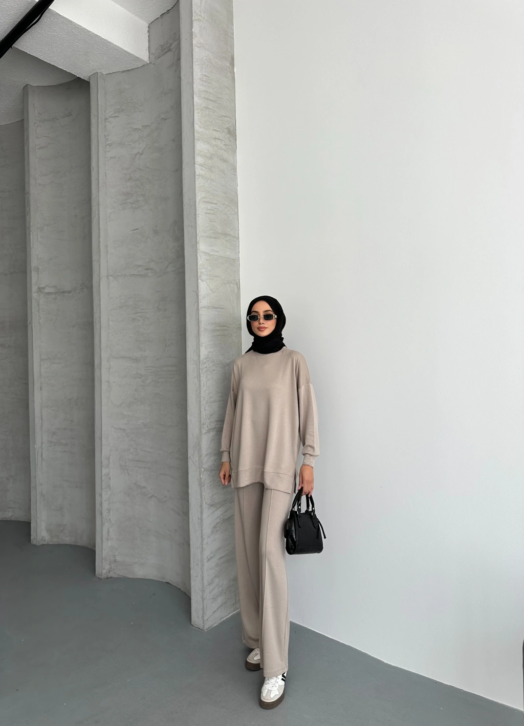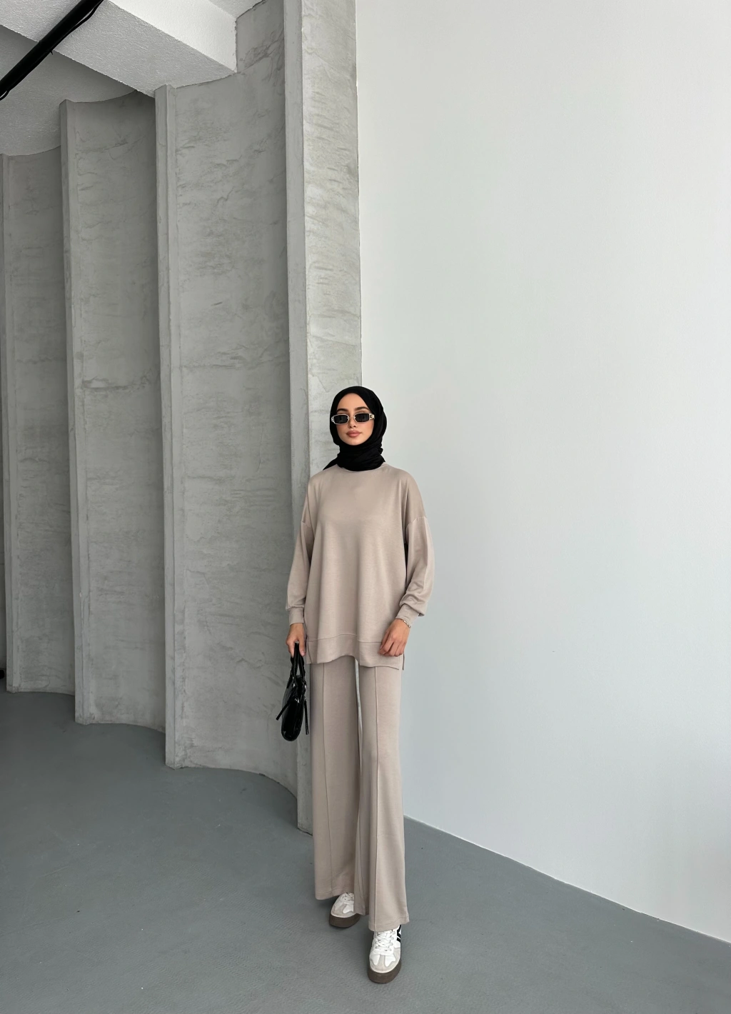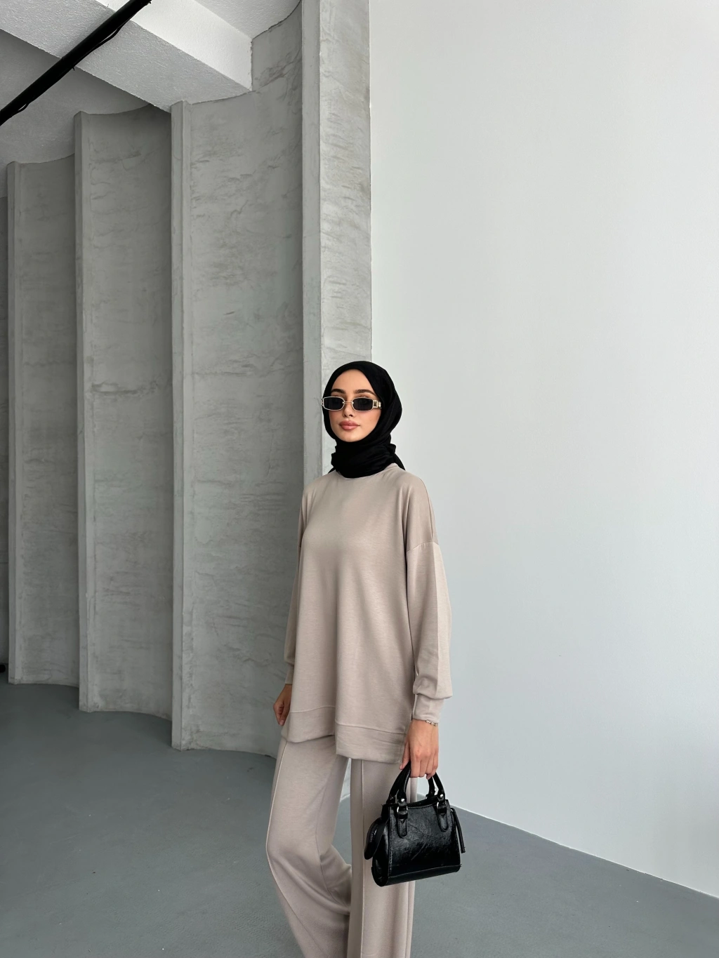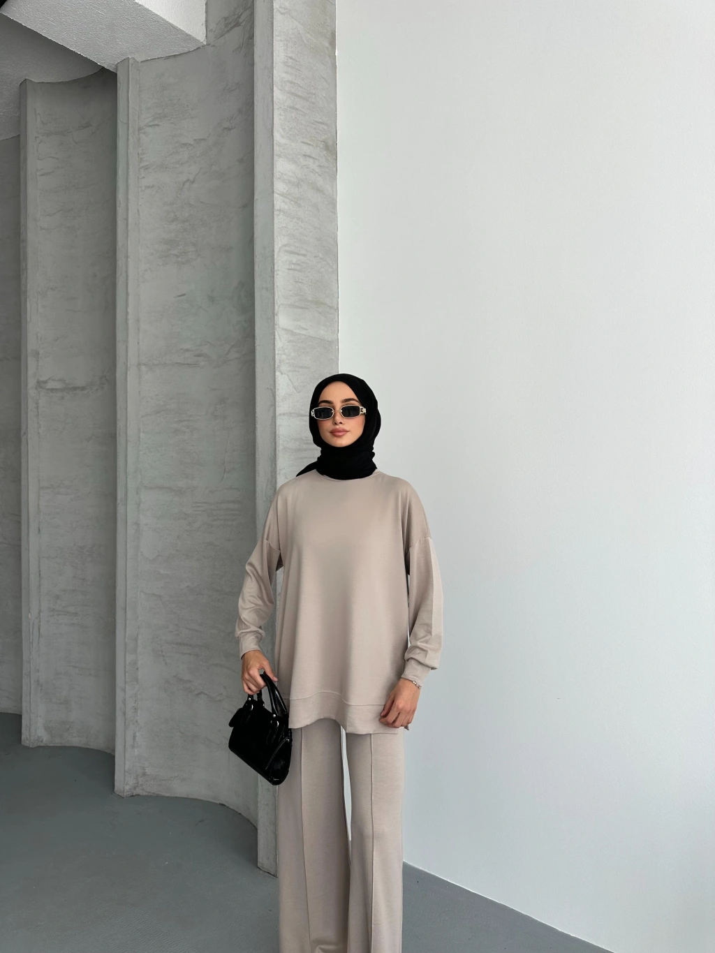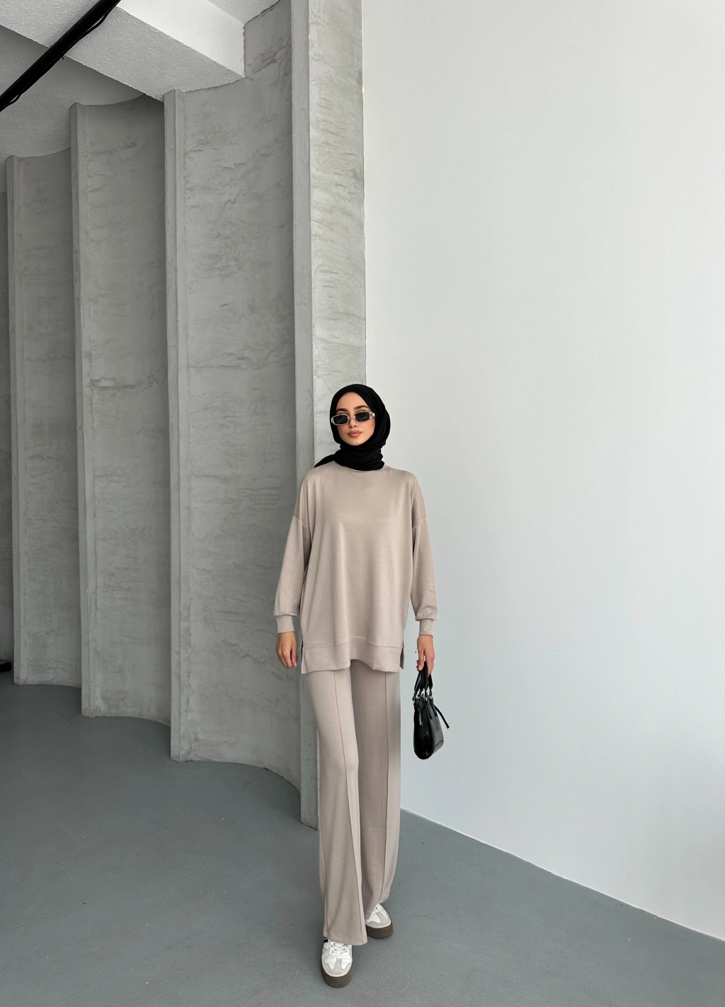 Bej Çımalı Modal Tesettür Alt Üst Takım