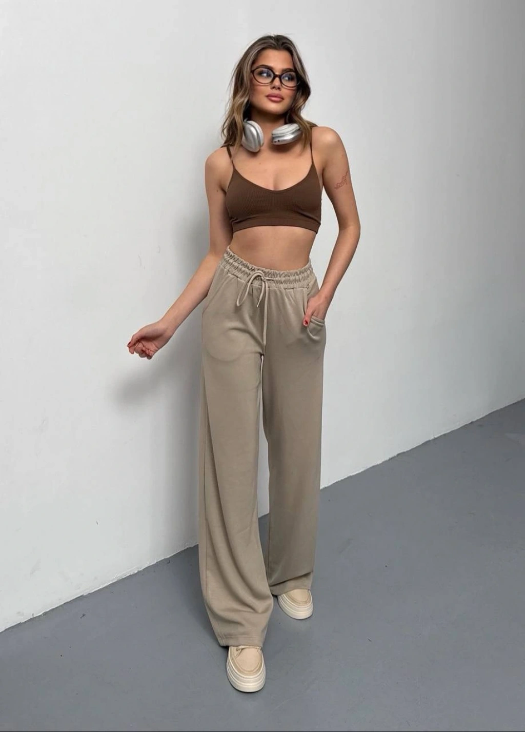 Bu modal kumaş bol paça pantolonu, şıklığı ve rahatlığı bir arada sunar. Beli lastikli ve bağcıklı tasarımı sayesinde her bedene uyum sağlar. Yan cepleri bulunan pantolon, kullanışlılığı ile ön plana çıkar. İnce dökümlü modal kumaştan üretilmiştir, böylece gün boyu konforu garantiler.