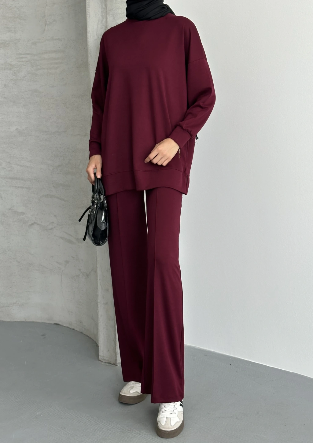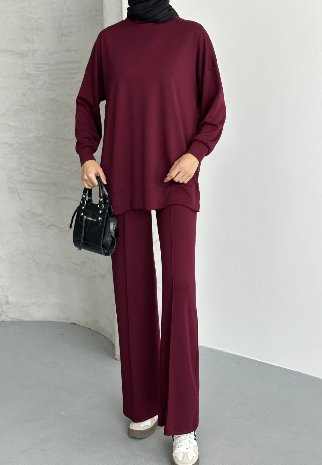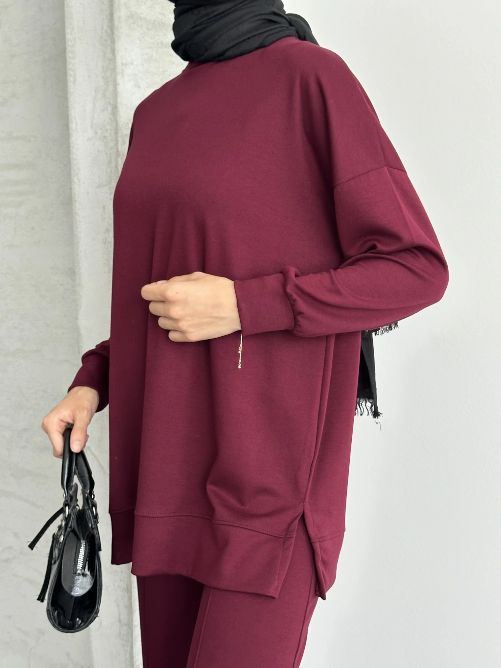 Bordo Çımalı Modal Tesettür Alt Üst Takım