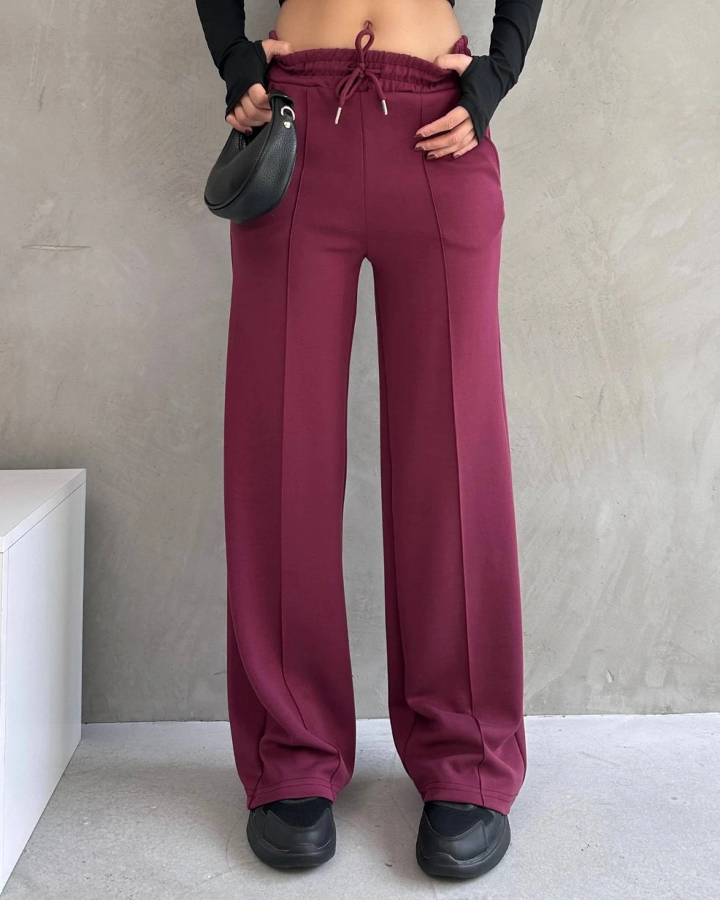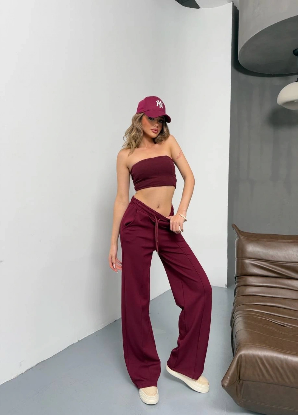 Bordo Modal Kumaş Çımalı Palazzo Pantolon