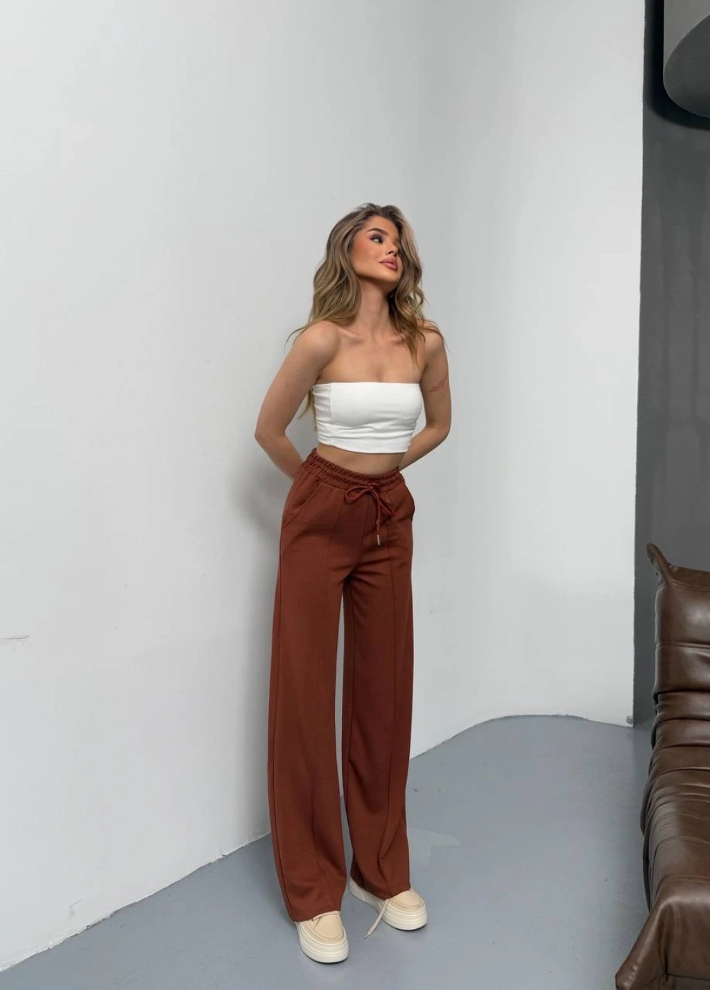 Kahve Modal Kumaş Çımalı Palazzo Pantolon