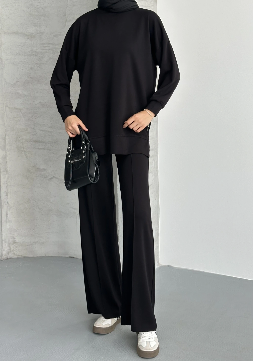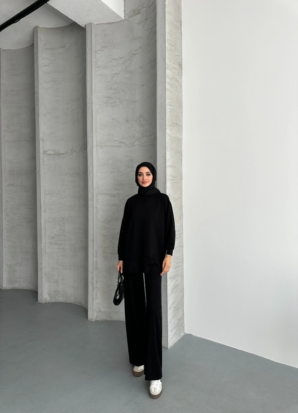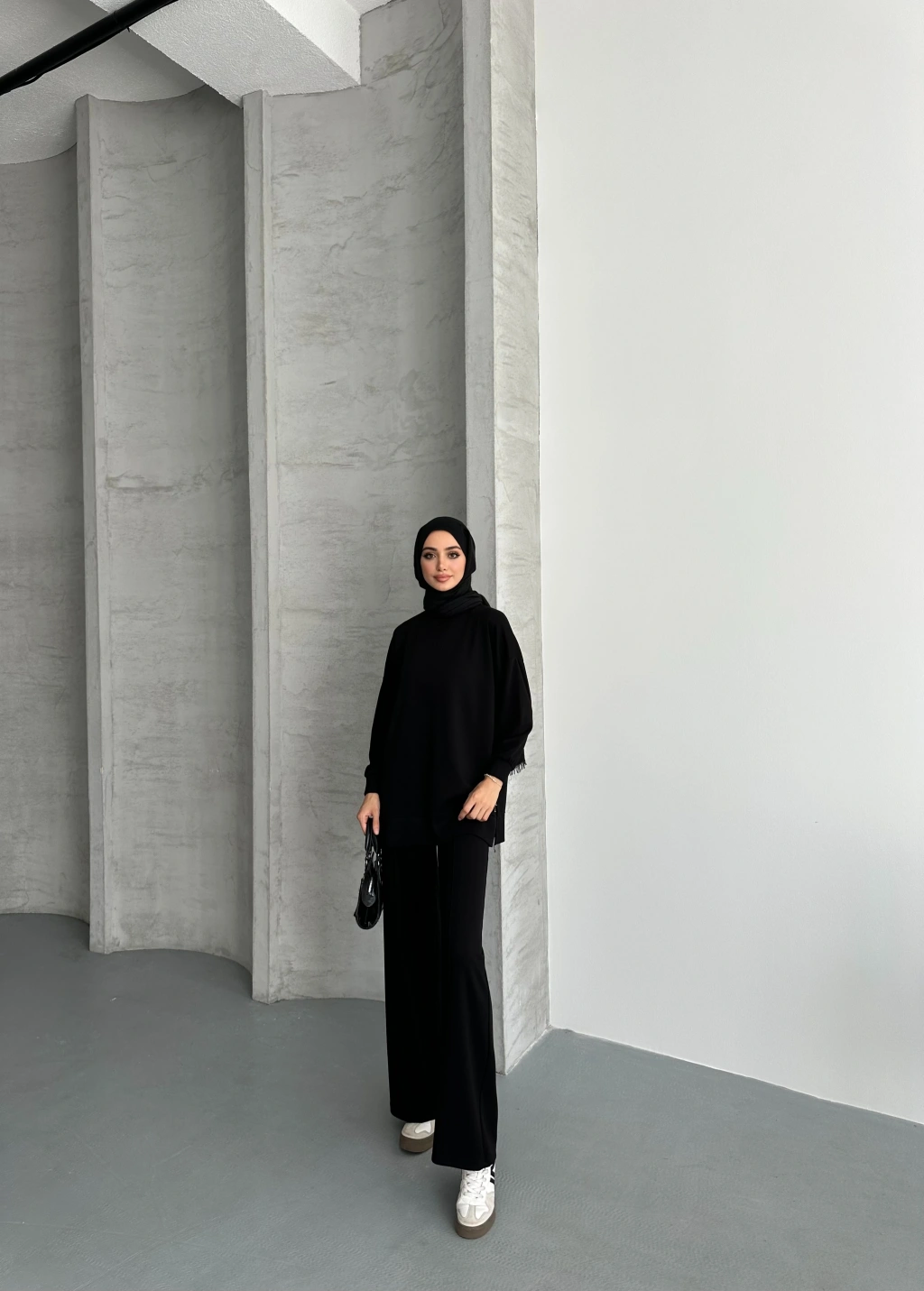 Siyah Çımalı Modal Tesettür Alt Üst Takım