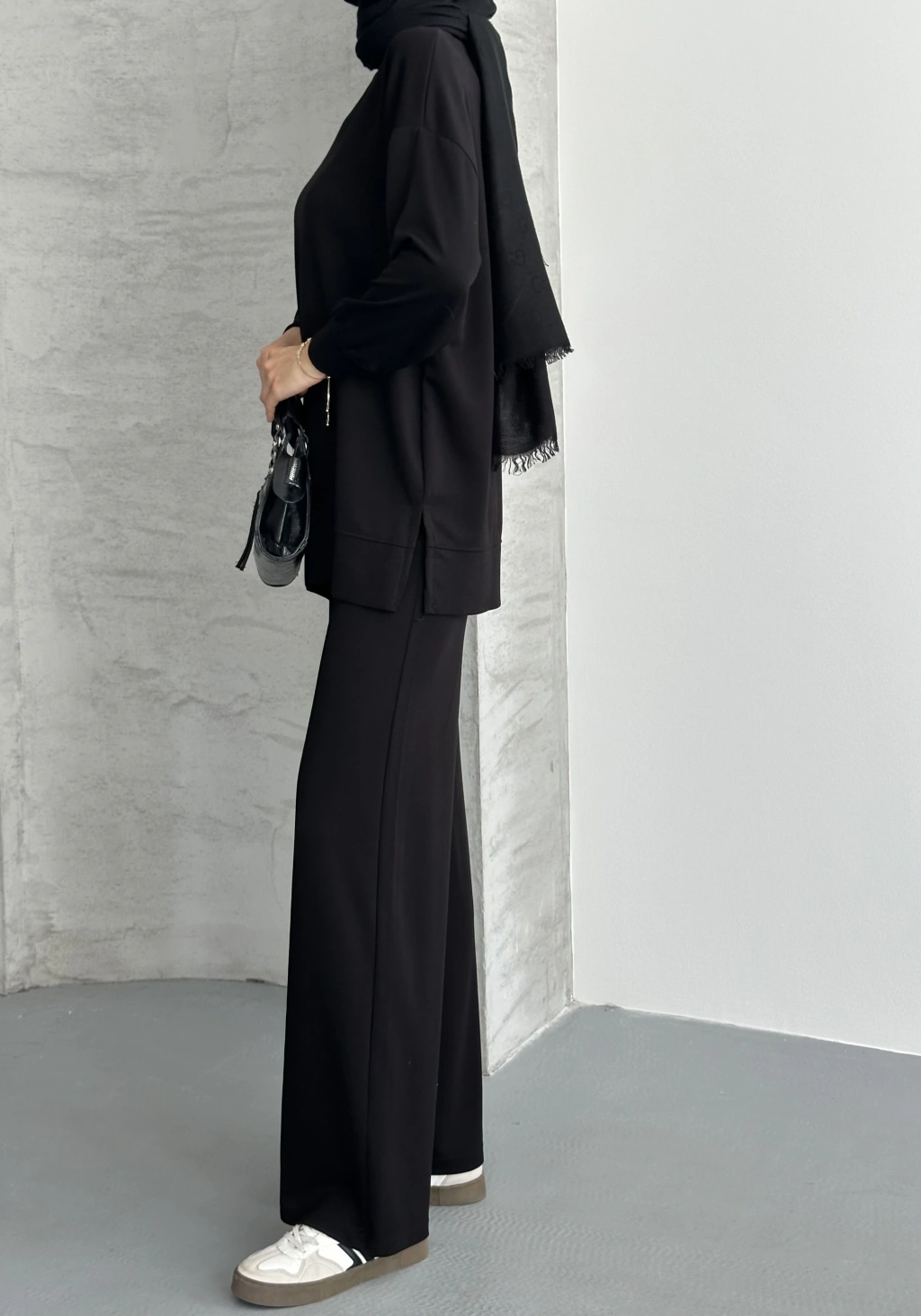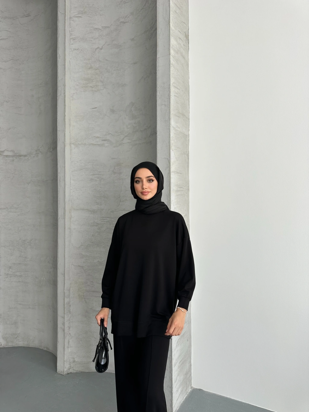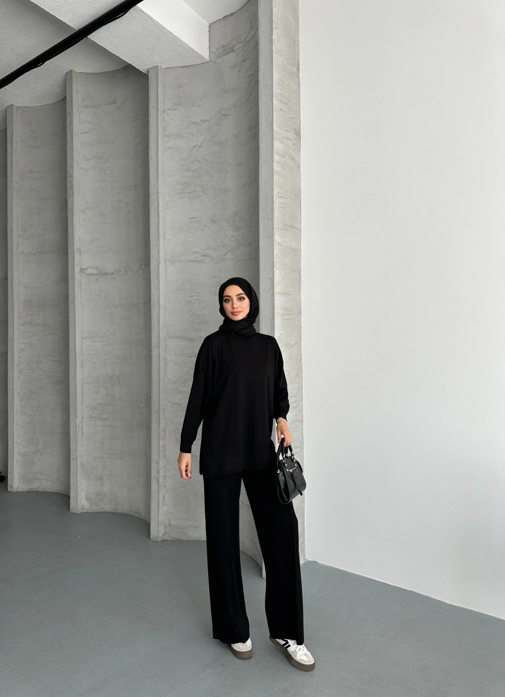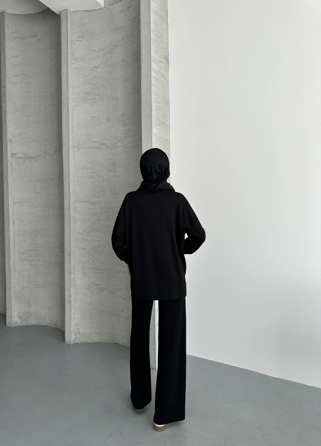 Siyah Çımalı Modal Tesettür Alt Üst Takım