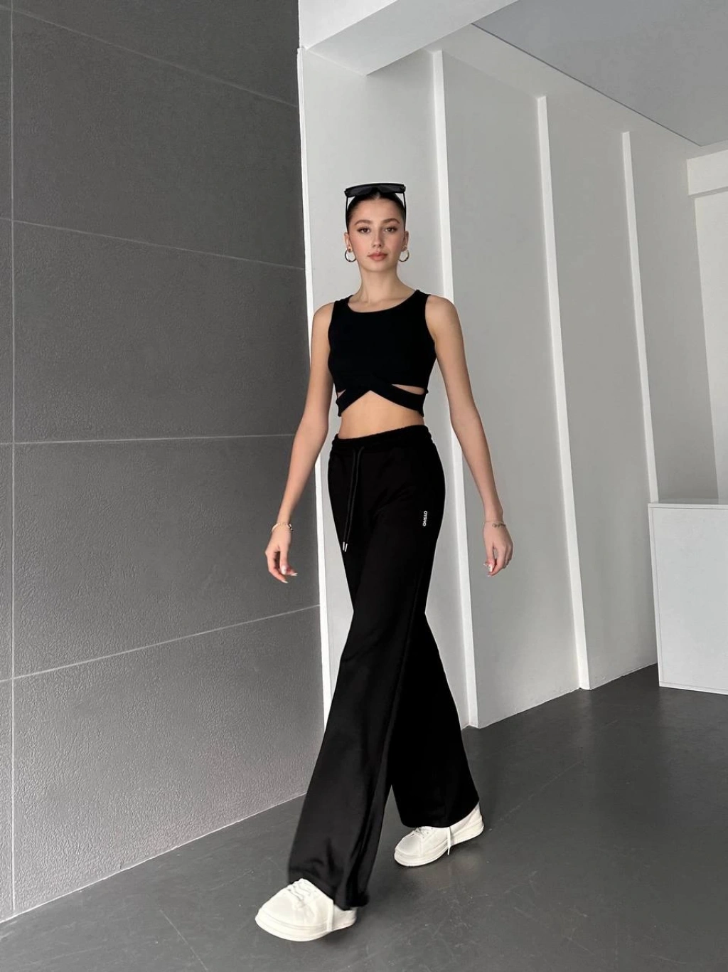 Bu siyah oys modal bol paça eşofman, konfor ve şıklığı bir araya getiriyor. Modal kumaştan üretilmiş olan bu eşofman, yumuşak dokusu sayesinde gün boyu rahatlık sunuyor. Esnek yapısı sayesinde hareket özgürlüğü sağlarken, tam kalıp olmasıyla da vücudu saran bir görünüm sunuyor. Yan cepli detayıyla şıklığı tamamlarken, bel bağı sayesinde isteğe göre ayarlanabilir bir kullanım sunuyor.